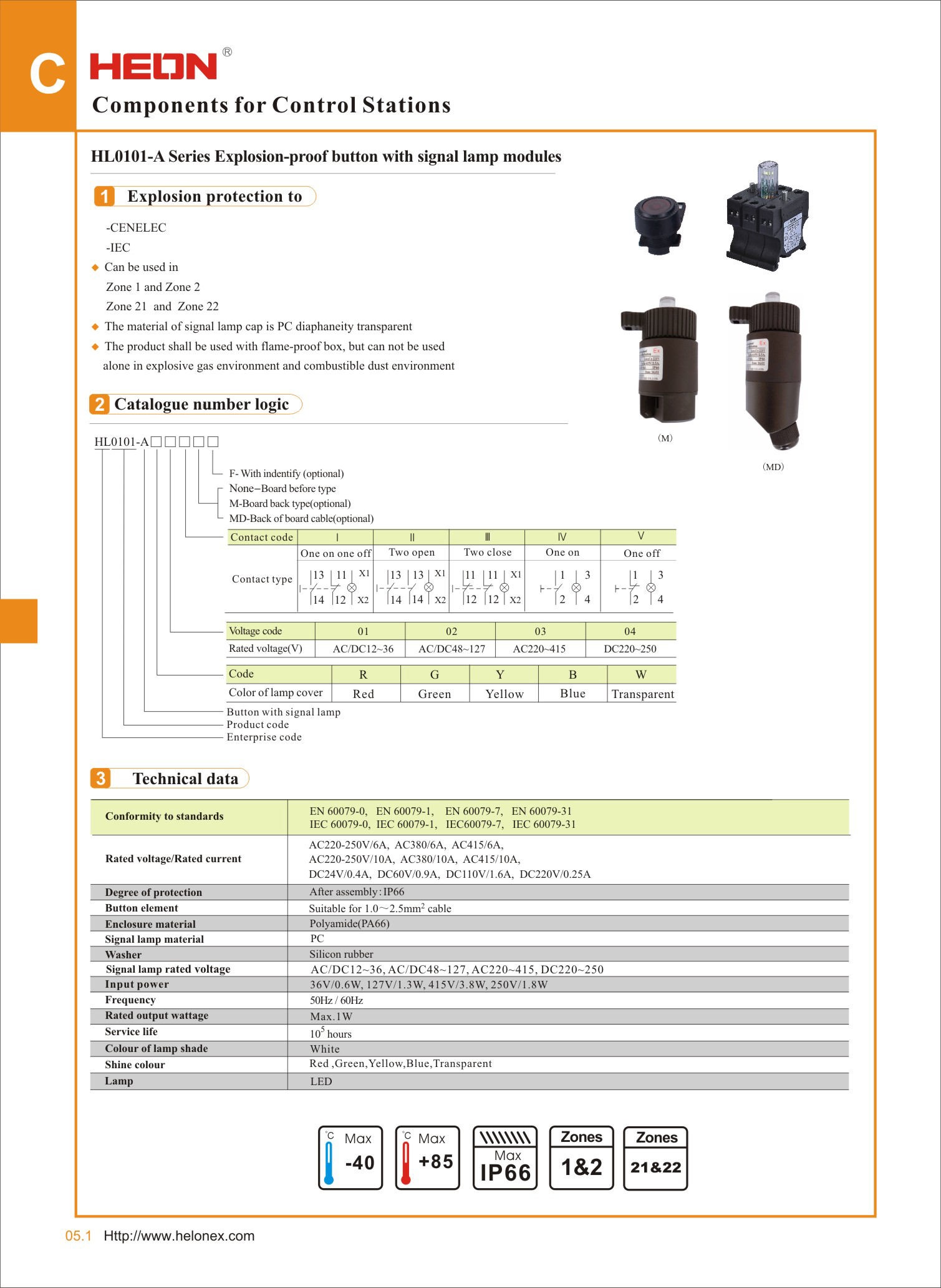 5. 防爆防腐控制按鈕帶信號燈(M)應與增安型殼體配套使用,不可單獨使用於爆炸性氣體環境。